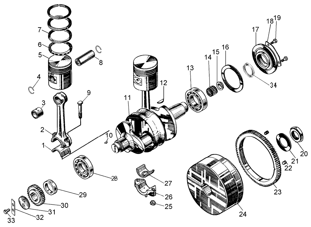 Кривошипно-шатунный механизм пускового двигателя на Т10М