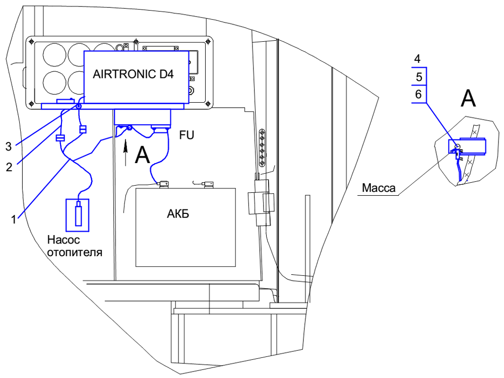 Электрооборудование установки отопителя «AIRTRONIC D4» на Т10М / Б10М