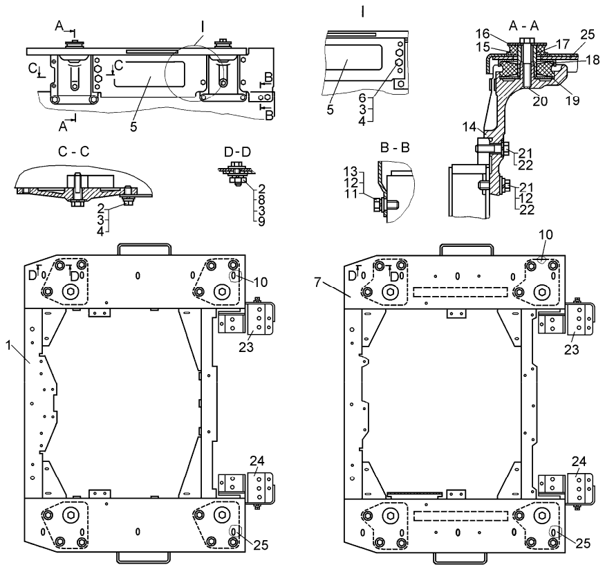 I - Для трактора с ROPS–FOPS или устройством для защиты оператора и капота.