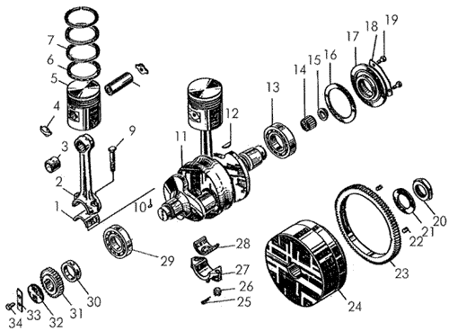 Кривошипно-шатунный механизм пускового двигателя