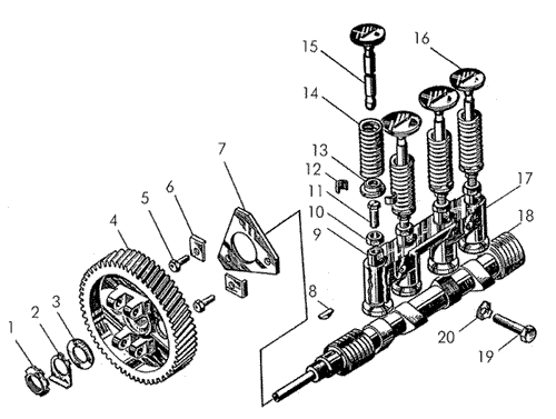 Механизм газораспределения пускового двигателя Т-170