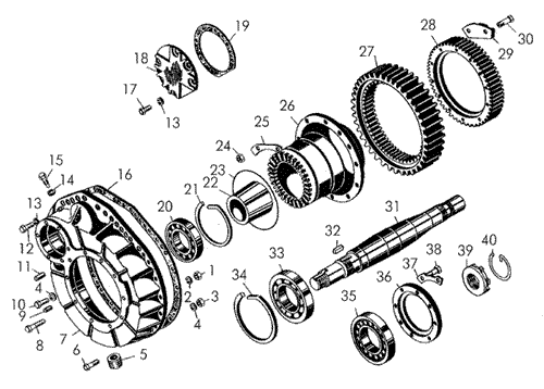 Детали бортовых редукторов  (кожух, полуось, подшипники, ступица, шестерни)