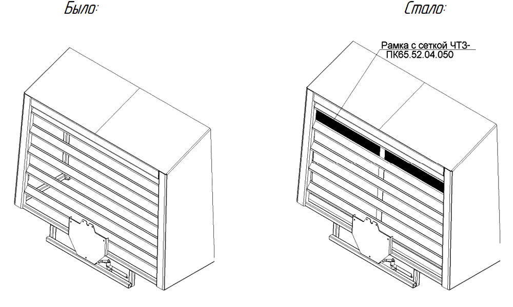 Для дополнительной защиты ячеек радиатора от загрязнения введена рамка с сеткой ЧТЗ-ПК65.52.04.050.