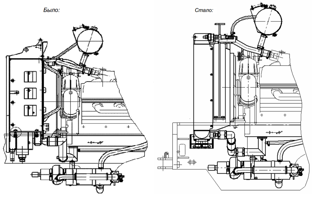 С целью повышения надёжности системы охлаждения погрузчика ПК65 с двигателям ЯМЗ-238М2-51 (компл. 238М2-1000175-51) ЯМЗ-236 применён фронтальный радиатор фирмы «HYDAC».