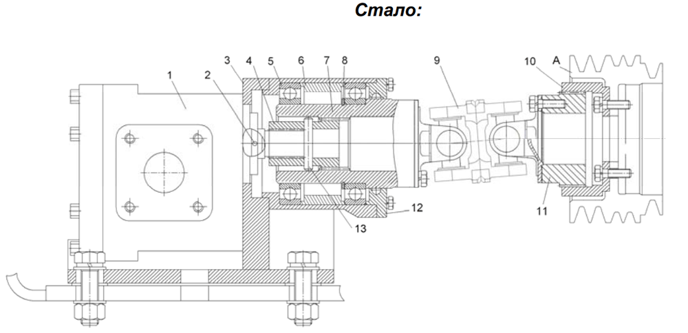 Привод насоса НШ-100 с вилкой карданного вала