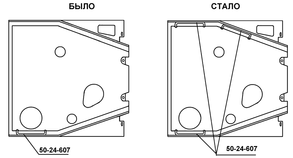 Для тракторов Т10М.0100, Т10МБ.0120, Т10М.6000, Т10М2Б.6020, Т11, Т12, Т14 введены 100% отверстия в рамах тележек для установки защиты ходовой.
