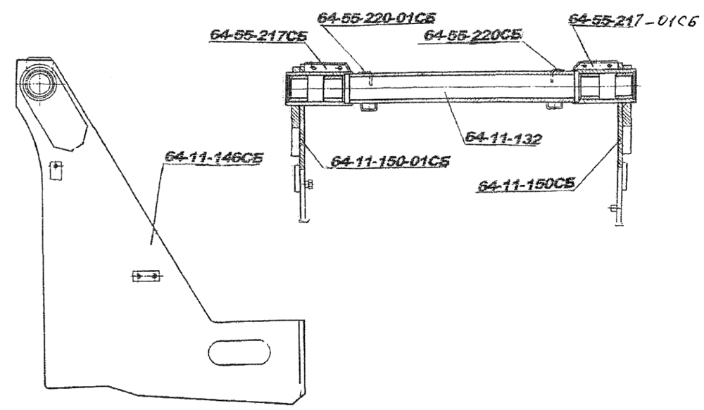 С целью снижения затрат и устранения литья разработано жесткое прицепное устройство сварной конструкции (64-51-218СП/СБ) взамен литой (50-51-118СП/СБ).