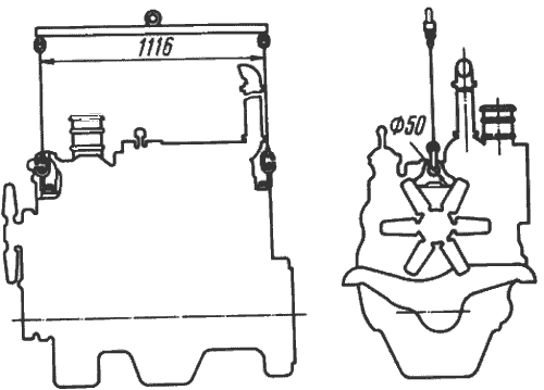 Схема строповки блока и кожуха маховика двигателя Д-160