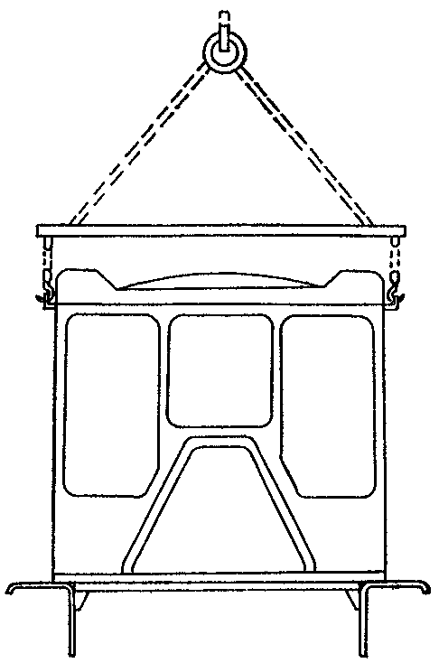 Застропите и установите переднюю крышку 3 коробки передач на штифты 1 и плоскость приспособления. Прижмите крышку прижимами 7.