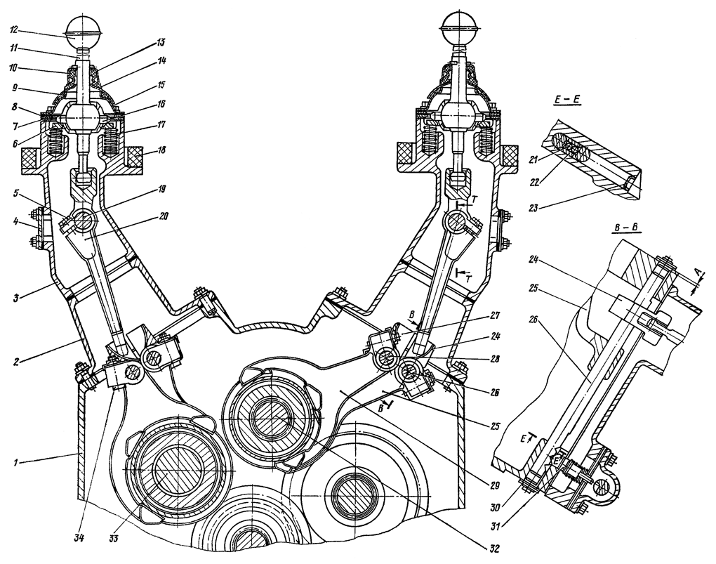7. Поворот рычагов валиков фиксаторов должен быть свободным, без заеданий при нейтральном положении рычага переключения передач и в положениях, соответствующих полному включению какой-либо передачи.