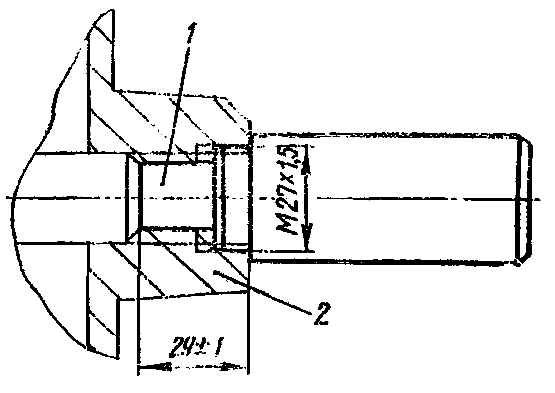 Установите крышку 16 и закрепите ее вместе с корпусом подшипников болтами с пружинными шайбами. Нагрейте фланец 13 до температуры 523...543 К (250...270 °С) и напрессуйте на вал. Наверните гайку 11 с левой резьбой на вал до упора во фланец 13, вверните два стопорных болта с пружинными шайбами. Проверьте, нет ли задевания маслосгонной резьбы за крышку подшипников, проворачивая верхний вал.