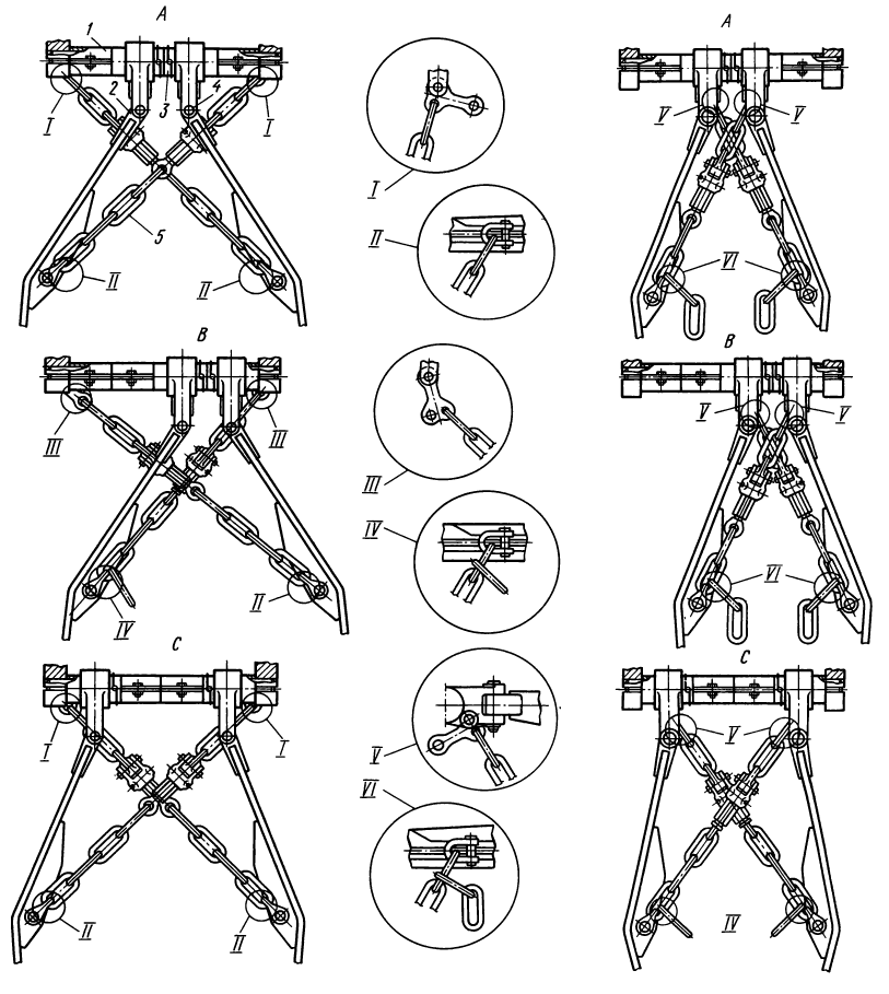 II, IV, VI — подсоединение цепи к нижней продольной тяге,