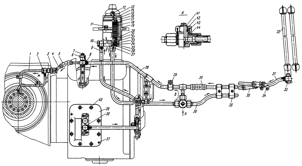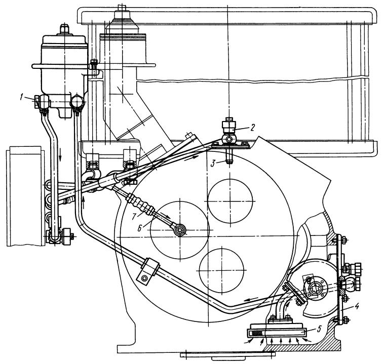 Рис. 75. Смазочная система трансмиссии (вид спереди) Т-130М