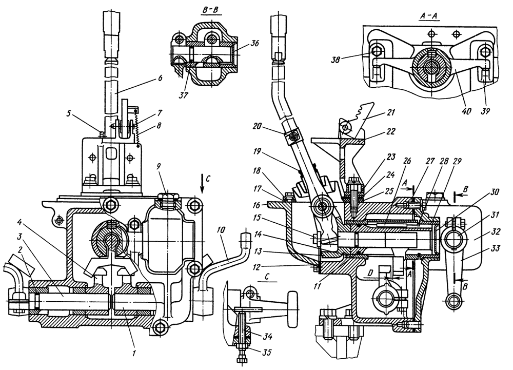 6 — штуцер подвода масла к ведущему валу коробки передач,